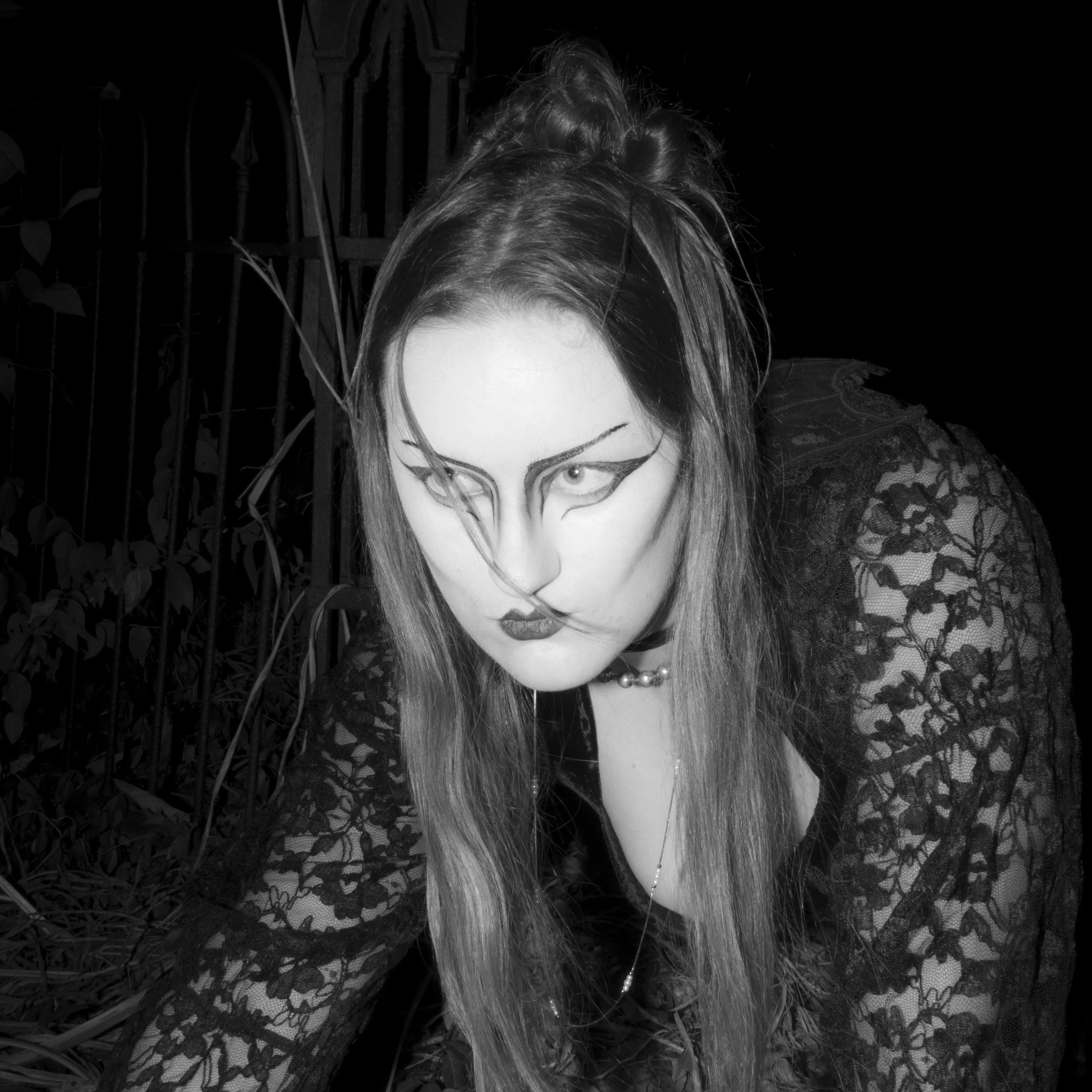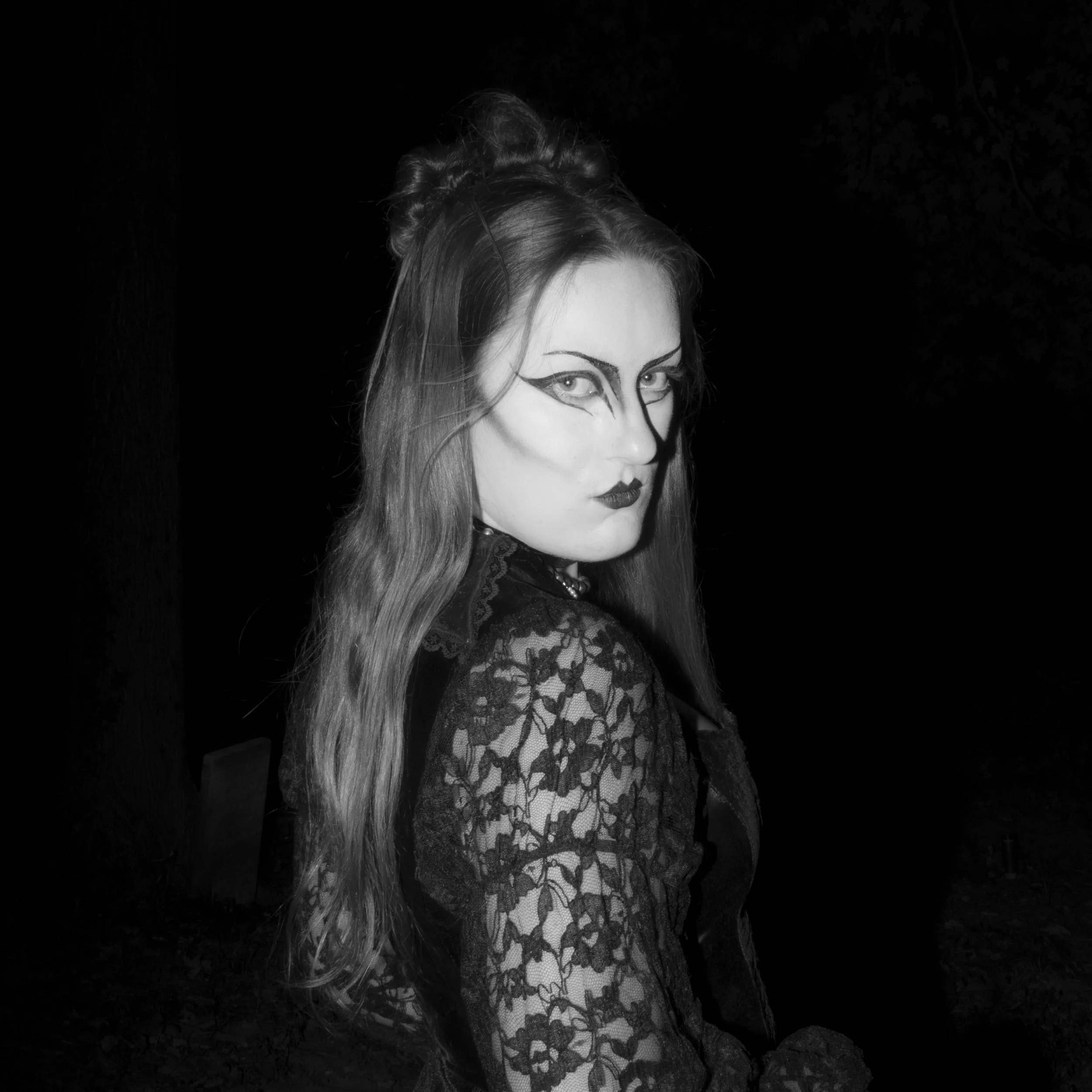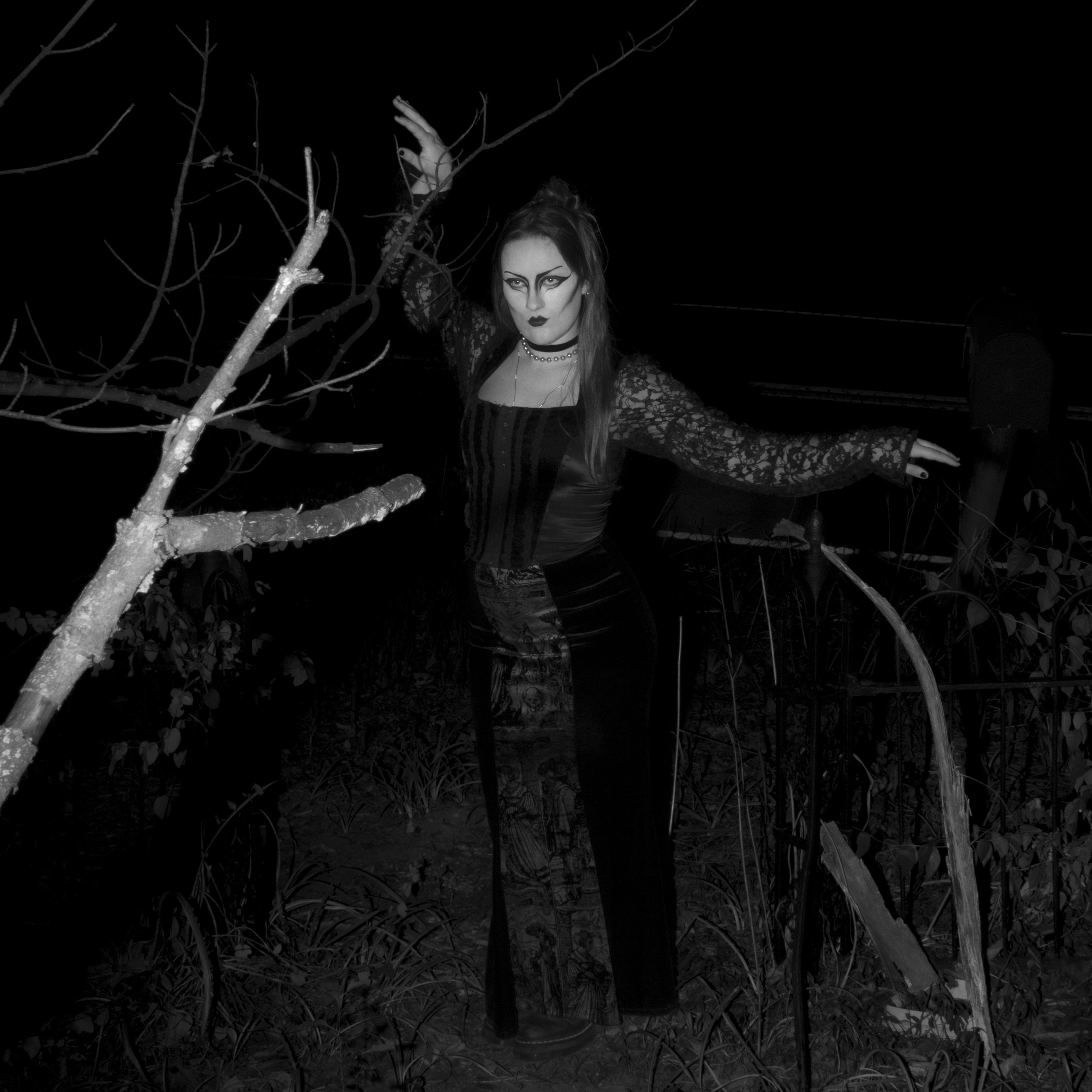 JUJU, has very present dark imagery, Halloween themes, and a gothic nature. The album is a highly influential gothic rock album. I wanted to have fun with subject matter and chose to focus on one subject with the makeup and styling as one of the most important factors of the image. Also focusing on creating an eerie overall atmosphere.