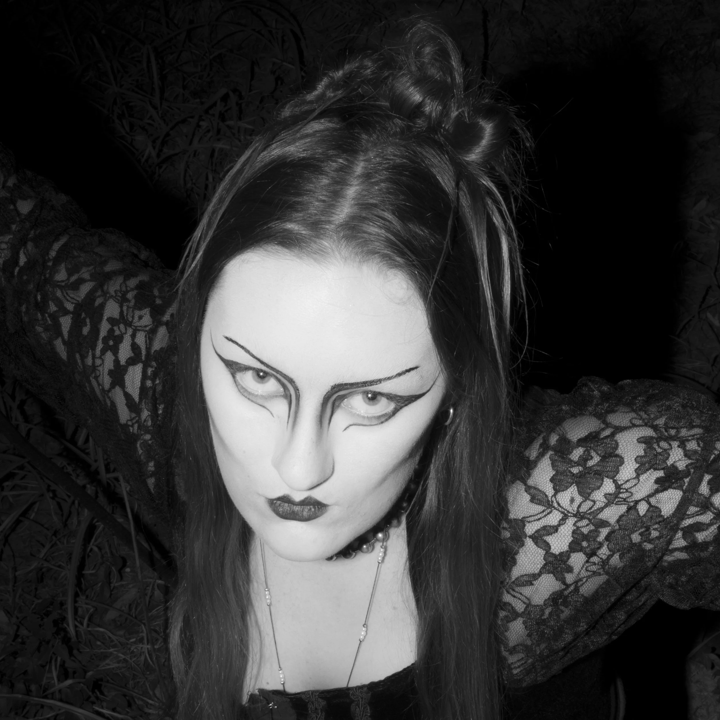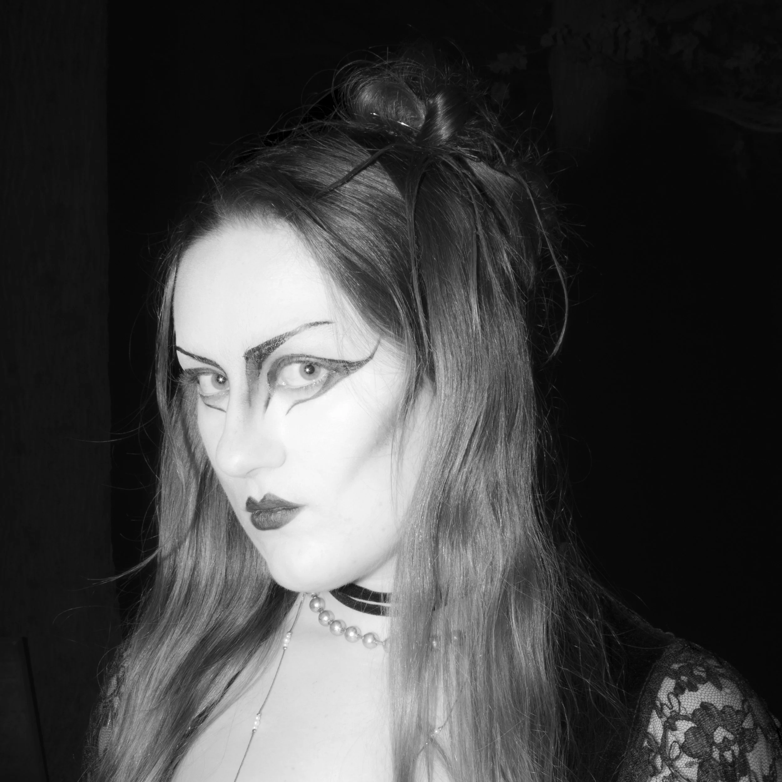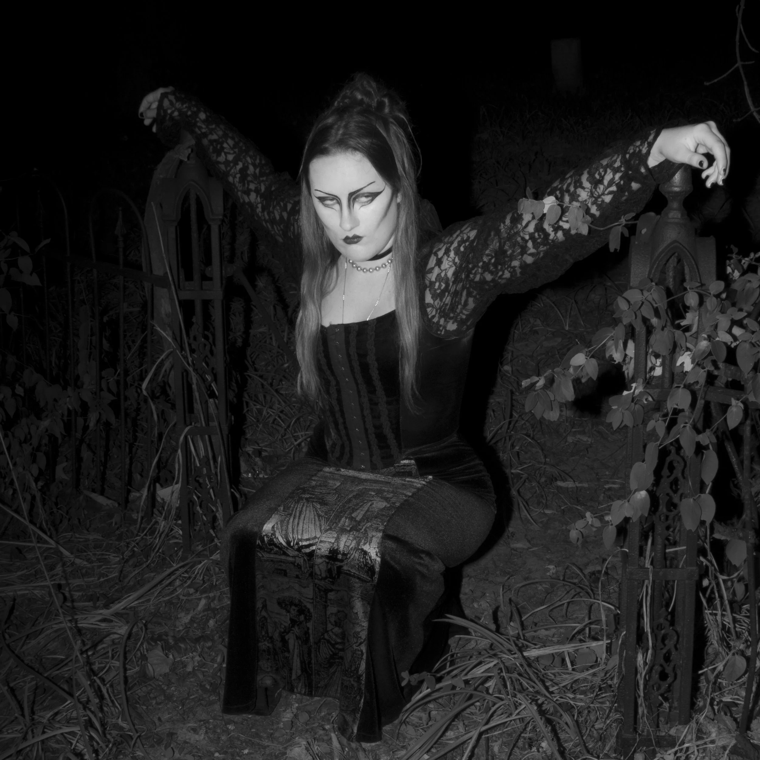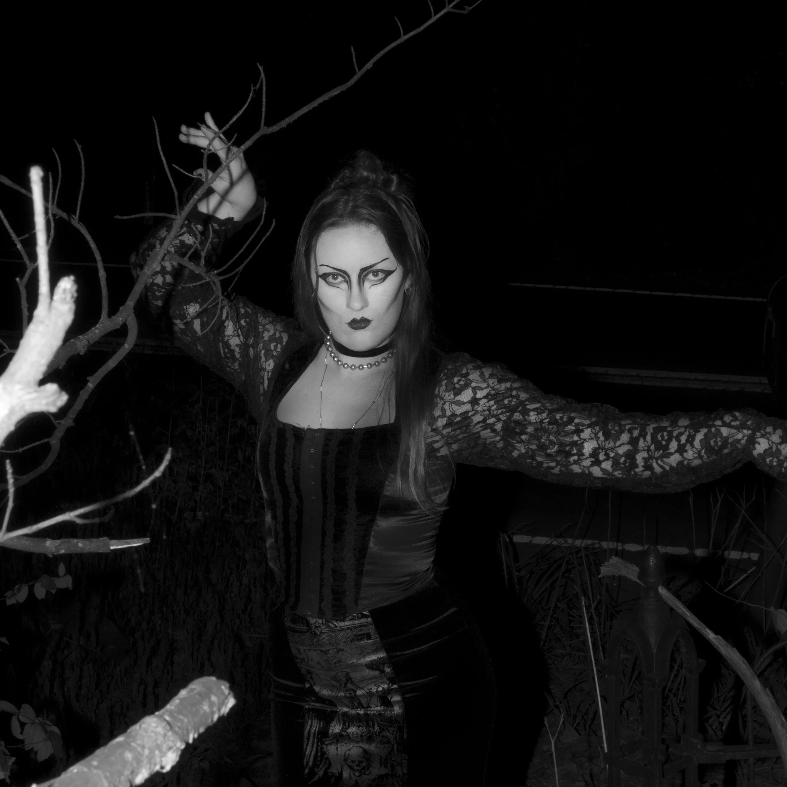 JUJU, has very present dark imagery, Halloween themes, and a gothic nature. The album is a highly influential gothic rock album. I wanted to have fun with subject matter and chose to focus on one subject with the makeup and styling as one of the most important factors of the image. Also focusing on creating an eerie overall atmosphere.
