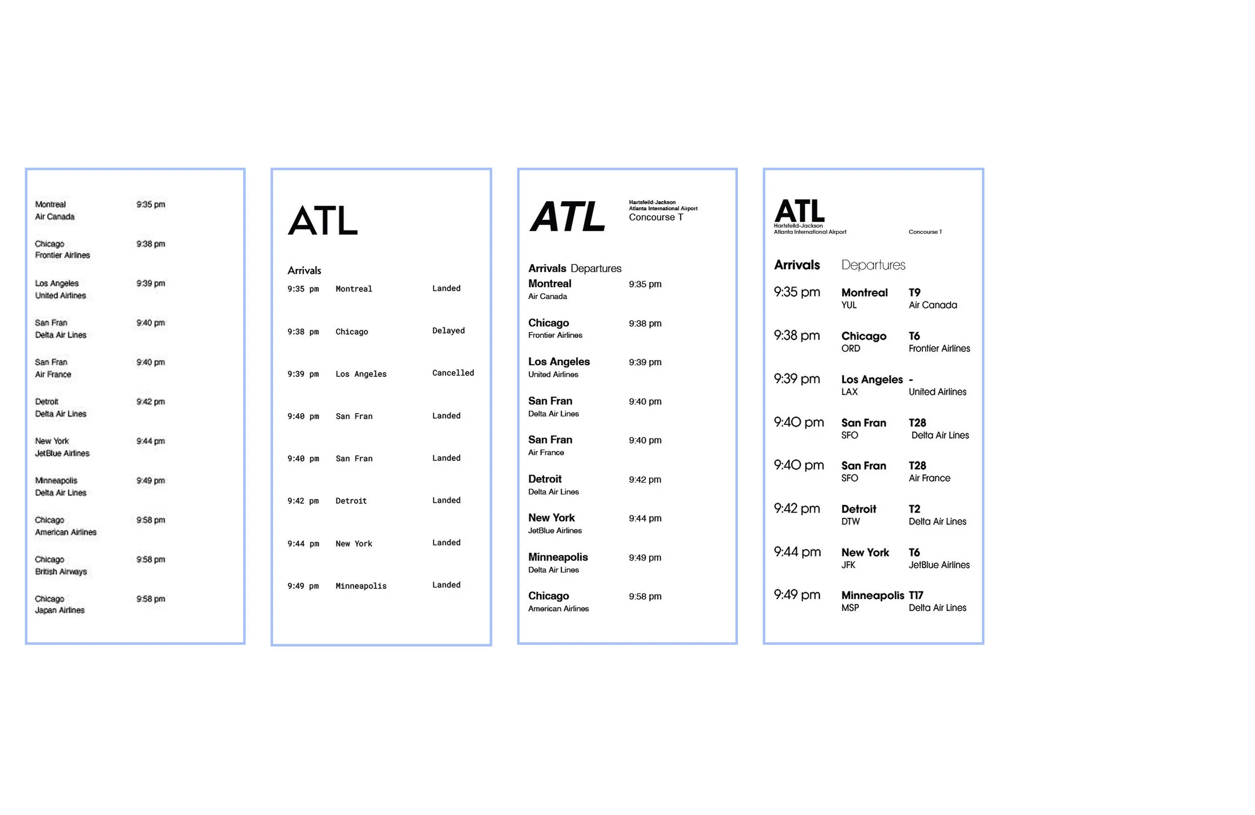 This assignment focused on organizing information clearly to improve communication. By studying typefaces, grid layouts, and hierarchy, the goal was to make text easier to read, guide viewers, and create unified layouts. Analyzing typography showed how fonts influence tone and clarity, while grids helped balance space. The project produced a clear, updated design system for the Atlanta International Airport.