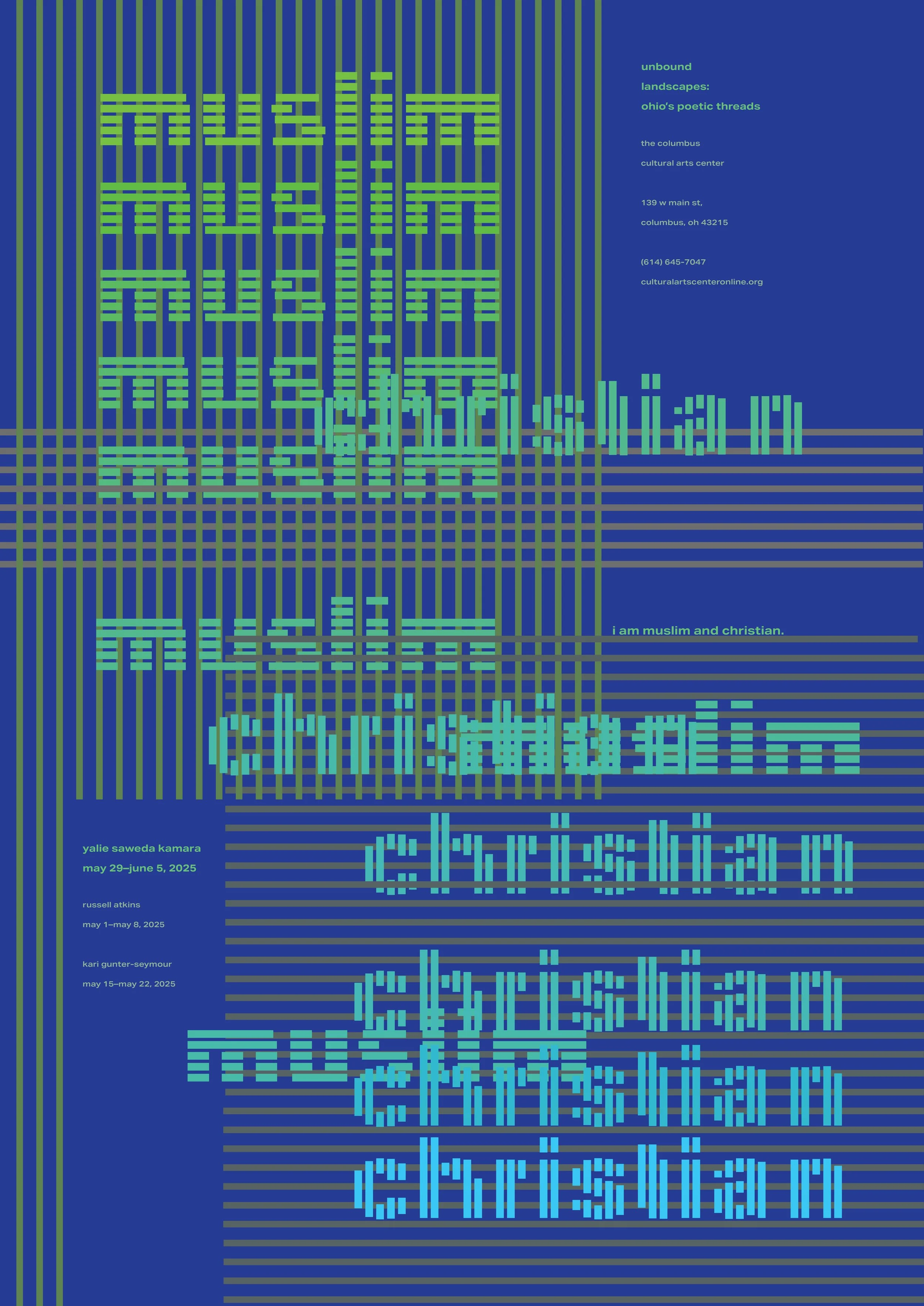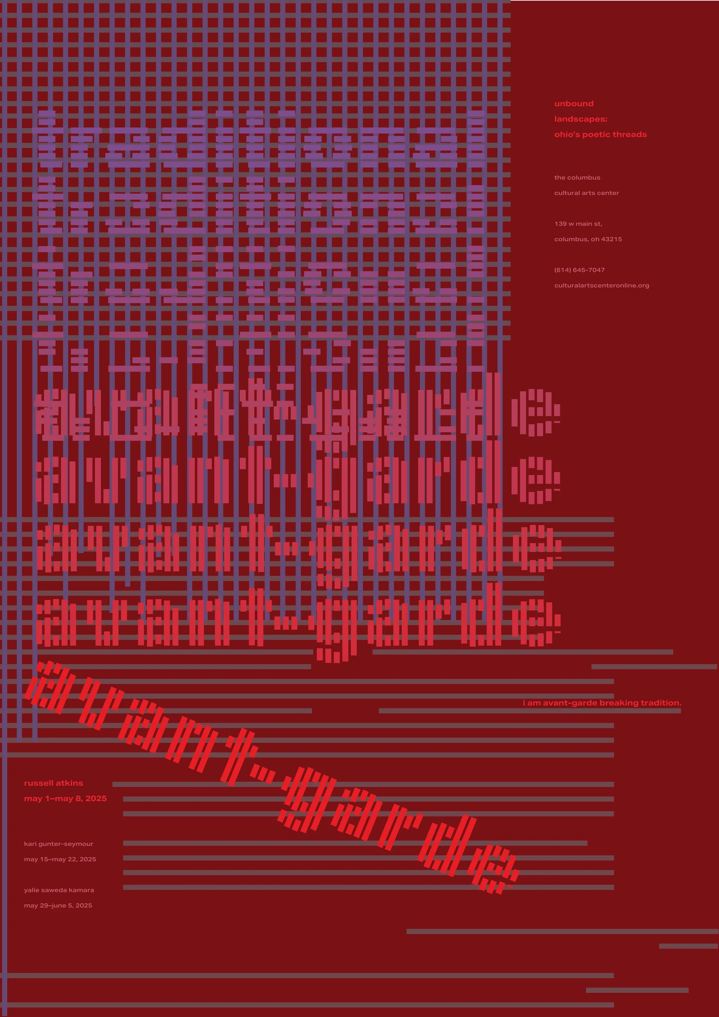 My posters were made for poets Kari Gunter-Seymour, Russell Atkins, and Yalie Saweda Kamara. The goal was to embody each poet while making the individual poster say something specific about the nature of said poet. My sequence is title Poetic Threads because my concept highlights how each poet brings something unique and personal to the poetry landscape. Each of them has their defining trait that weaves their poetic threads.
